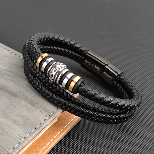 Bransoletka Luksusowa Męska Wykonana z Plecionej Skóry Naturalnej
