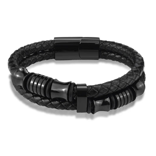 Bransoletka dla mężczyzn i chłopców z plecioną skórą i stalą nierdzewną