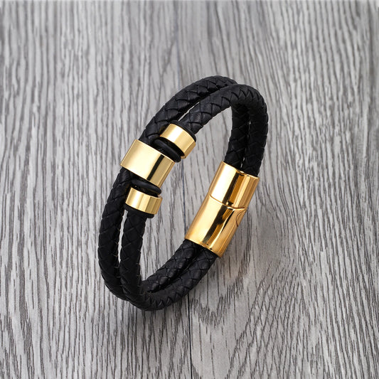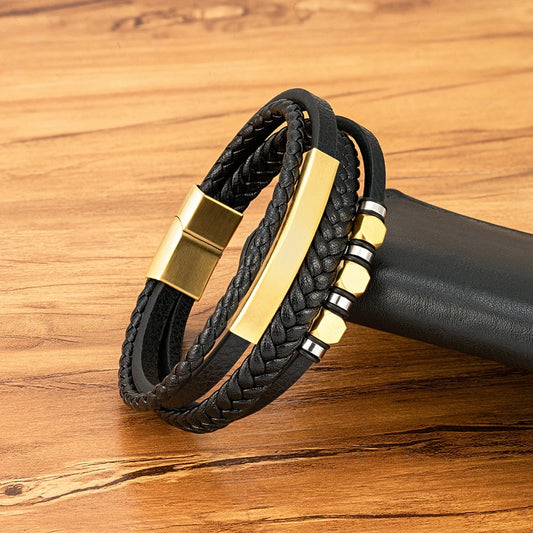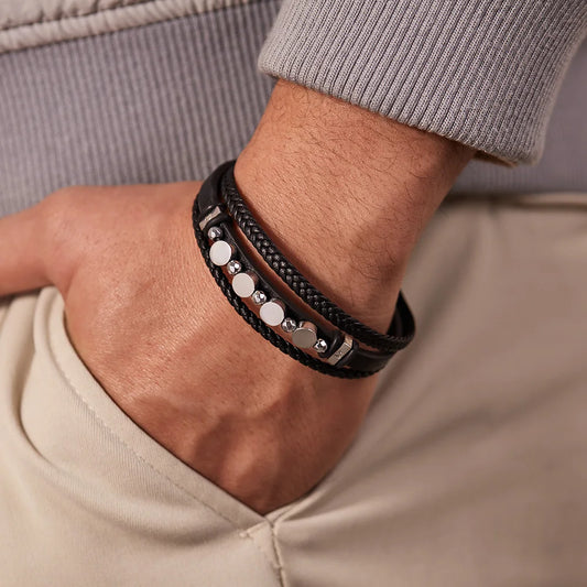 Bransoletka Męska ze Stali Chirurgicznej i Skóry – Wielowarstwowy Design