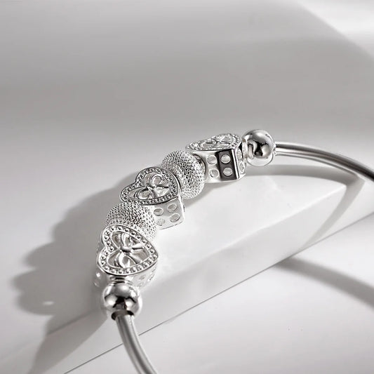 Bransoletka Srebrna z Eleganckimi zawieszkami w Kształcie S erca.