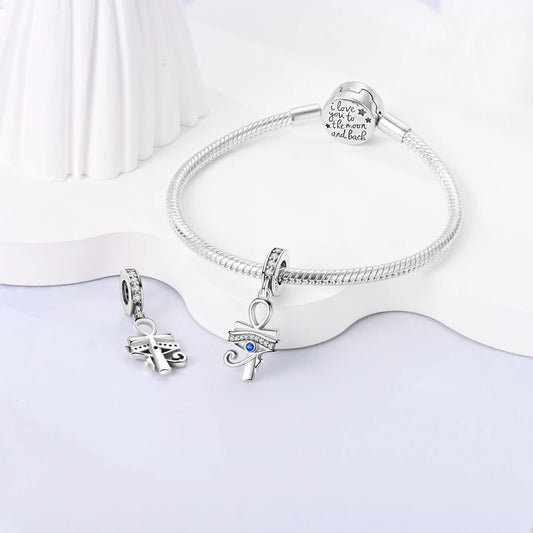 Zawieszka Srebrna w Kształcie Krzyża Ankh i Oka Horusa.
