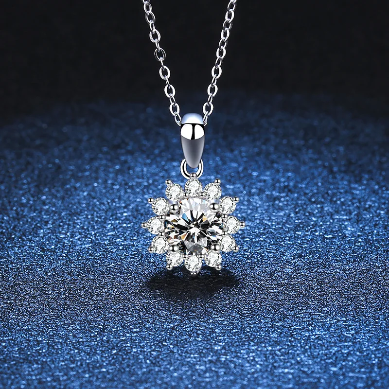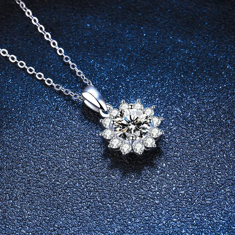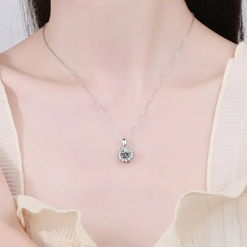 Naszyjnik Pozłacany Białe złoto - Słonecznik z Moissanitem