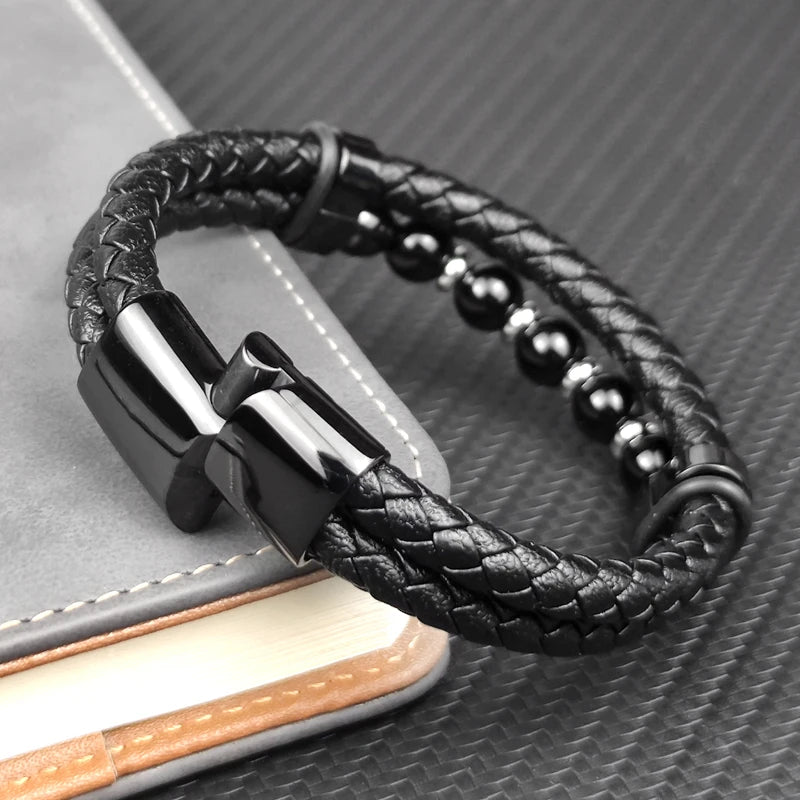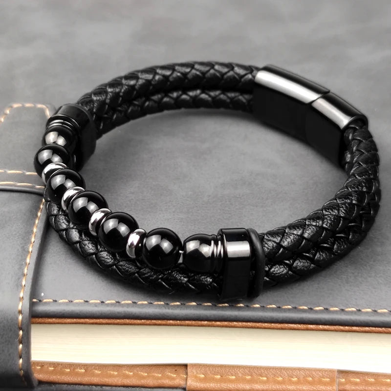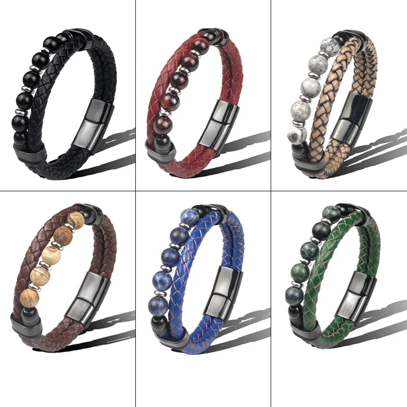 Bransoletka Męska z Kamieni Naturalnych i Stali Nierdzewnej – Klasyczny Styl