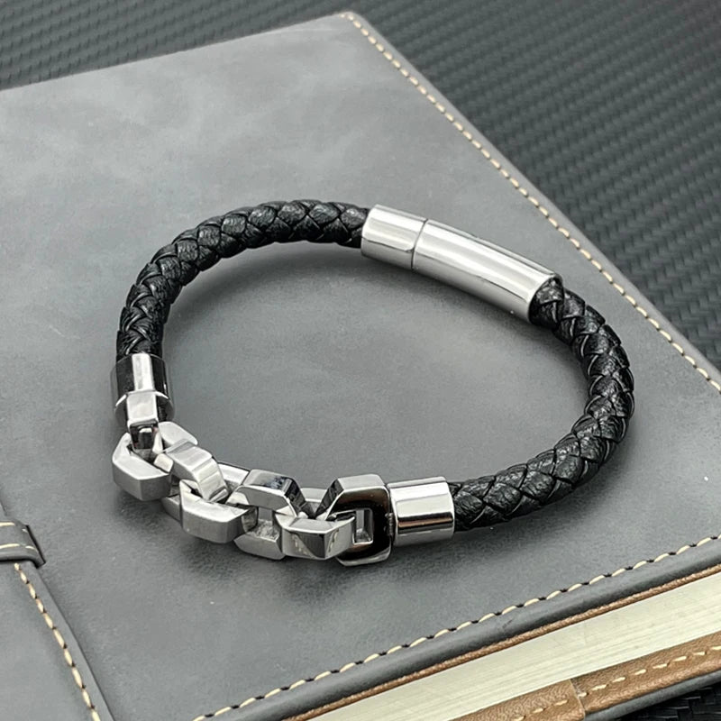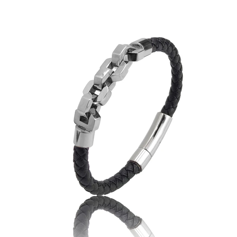 Dodaj odrobinę luksusu do swojego codziennego stylu dzięki tej wyjątkowej bransoletce ze skóry i stali.