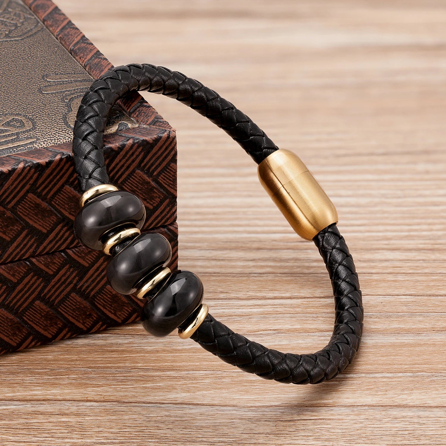 Bransoletka Unisex z Naturalnym Kamieniem - Klasyczna Elegancja dla Kobiet i Mężczyzn