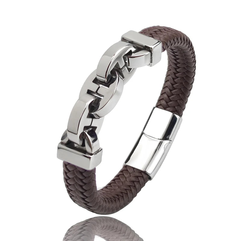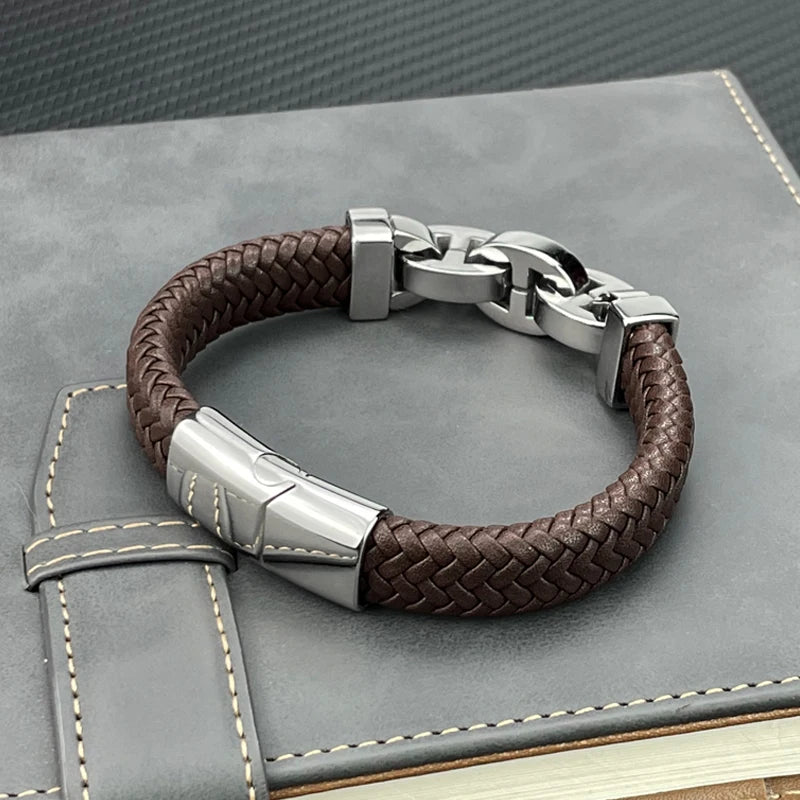 Szukasz modnej męskiej bransoletki, która łączy elegancję, wygodę i trwałość? Ta luksusowa męska bransoletka skórzana to doskonały wybór dla mężczyzn ceniących klasykę i nowoczesny minimalizm. Wykonana z wysokiej jakości skóry naturalnej i trwałej stali nierdzewnej 316L, zachwyca swoim eleganckim wyglądem i precyzyjnym wykończeniem.