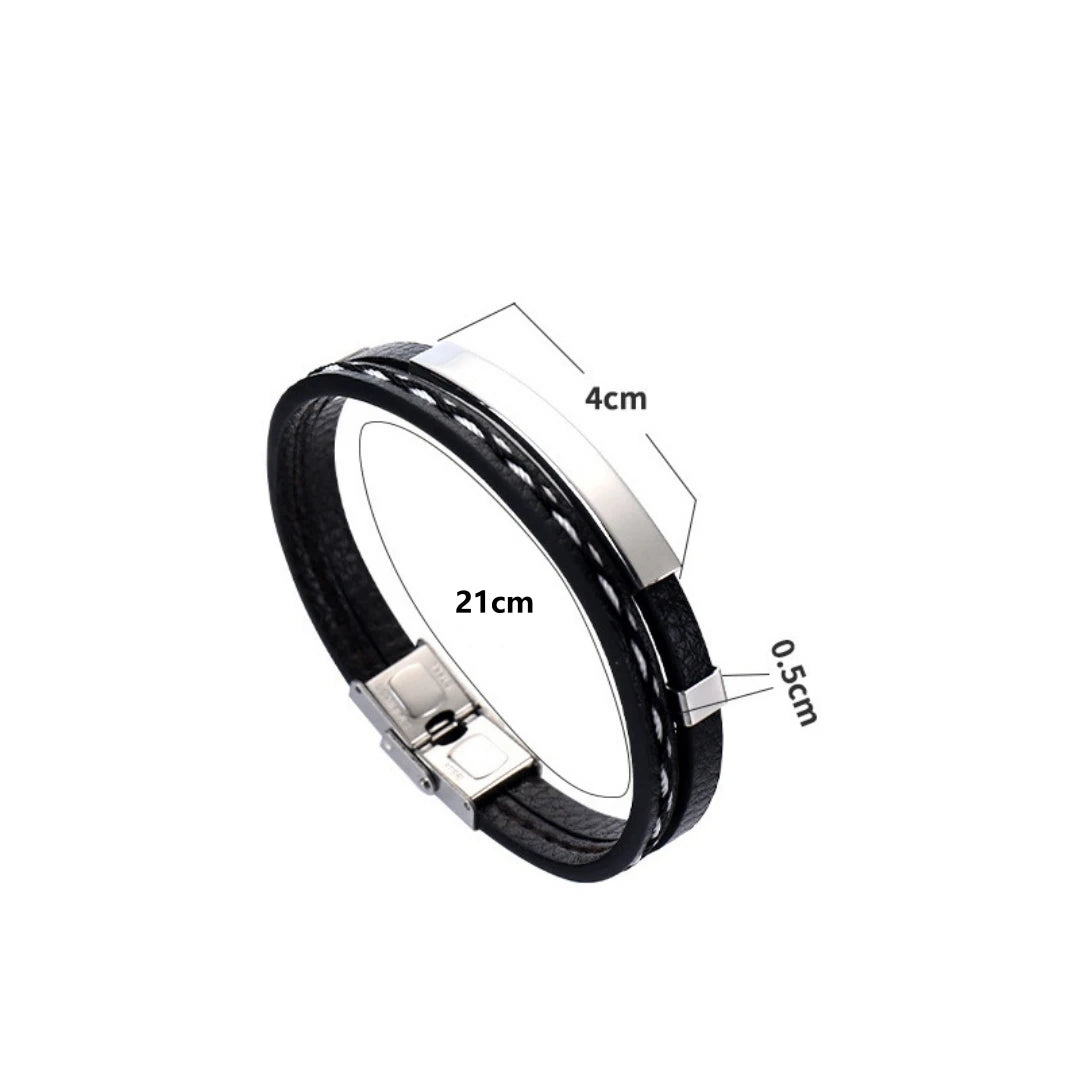 Dodaj wyjątkowego charakteru swoim stylizacjom dzięki nowoczesnej bransoletce męskiej wykonanej z wysokiej jakości skóry naturalnej i stali nierdzewnej. Stylowy design z geometrycznym wzorem i eleganckim łańcuszkiem typu link sprawia, że bransoletka doskonale komponuje się zarówno z codziennymi, jak i bardziej formalnymi zestawieniami.