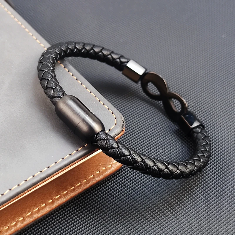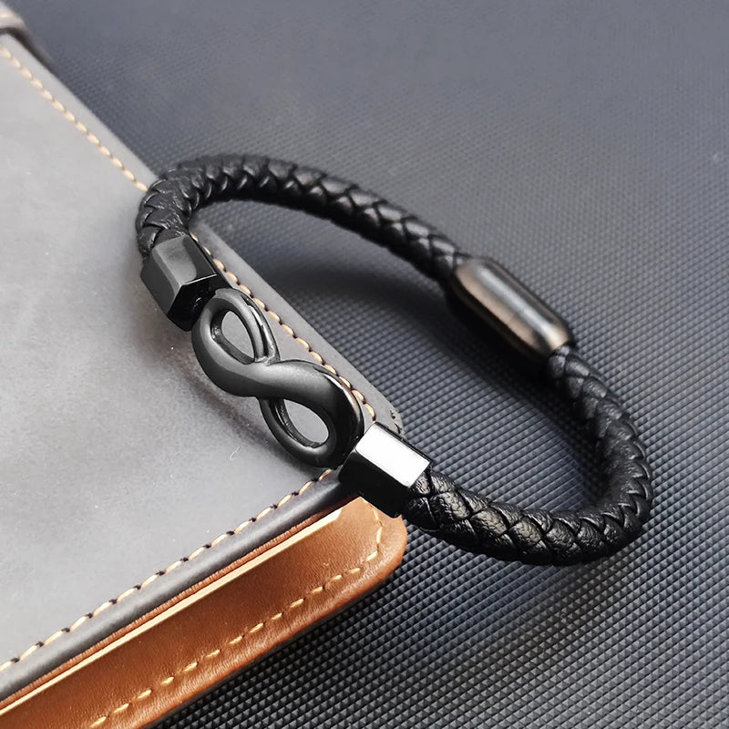 Bransoletka Męska ze Skóry z Symbolem Nieskończoności