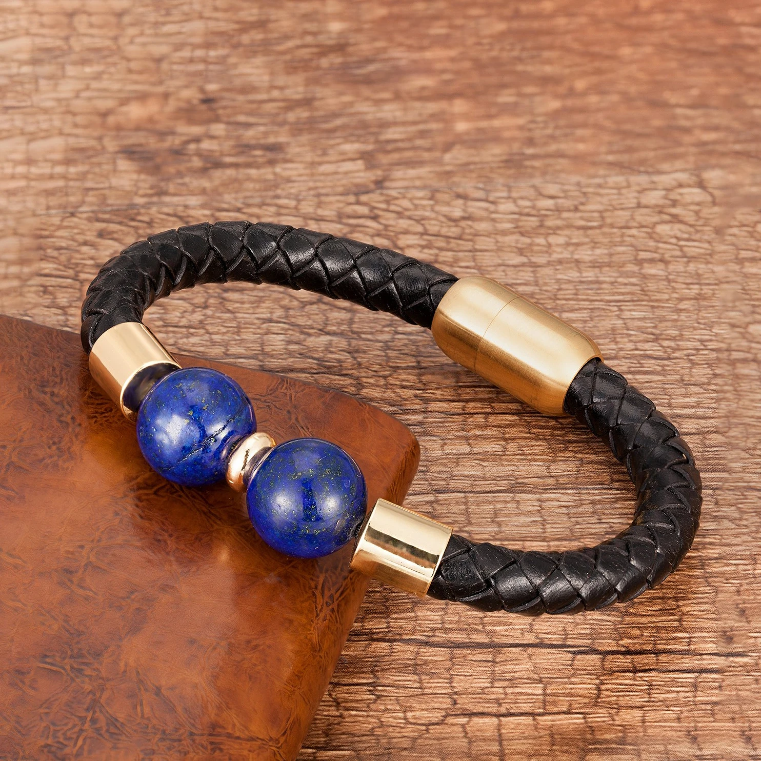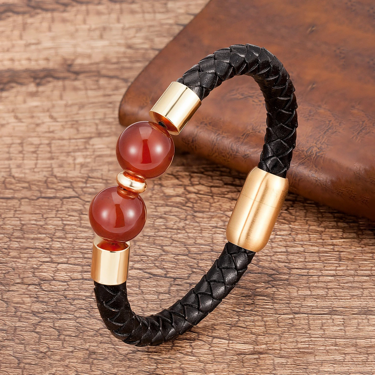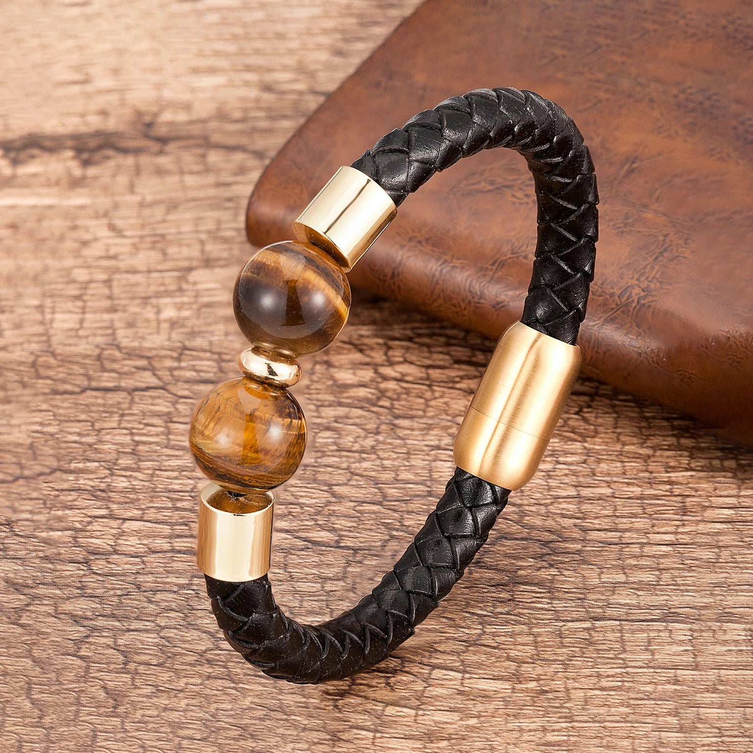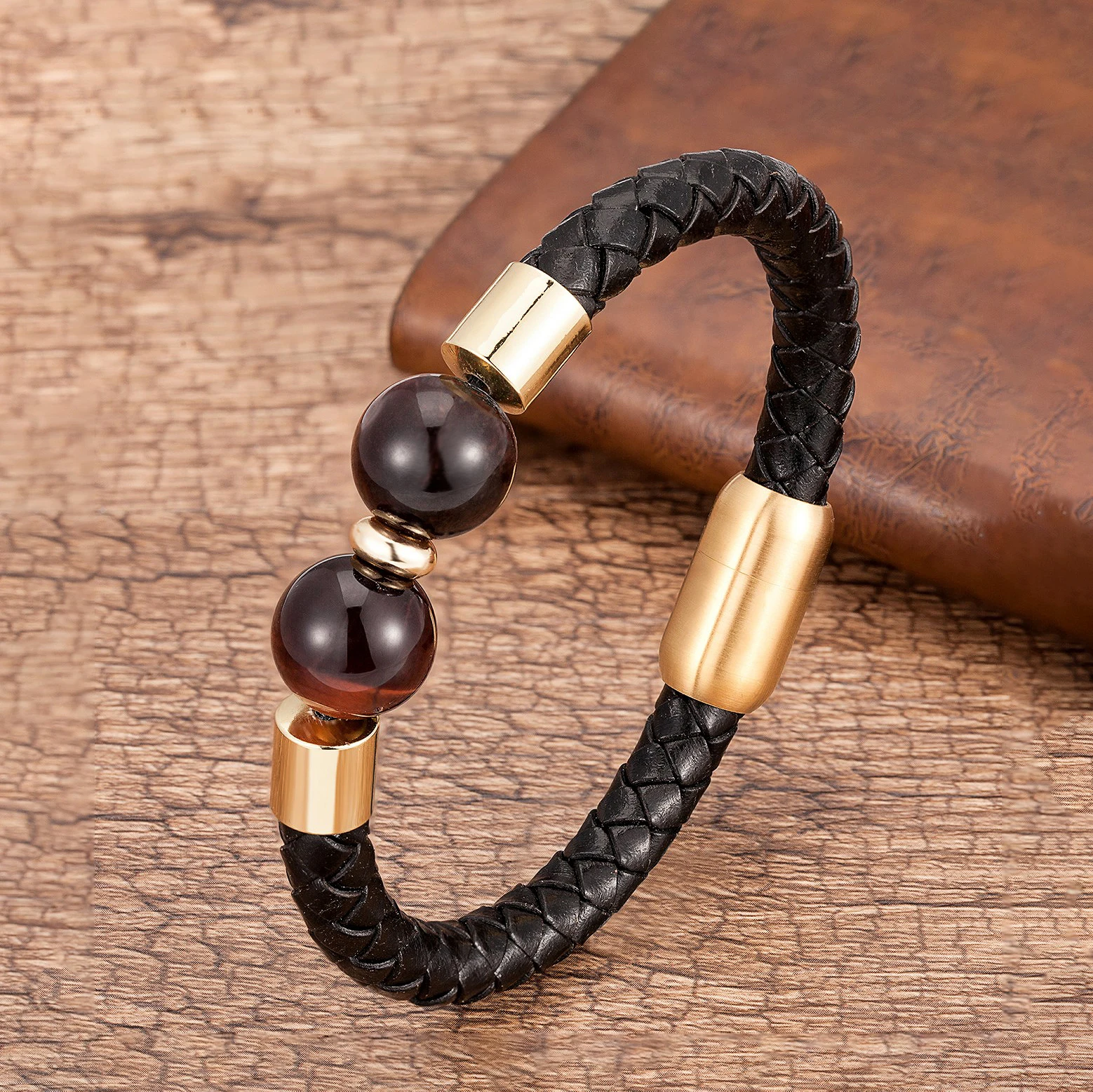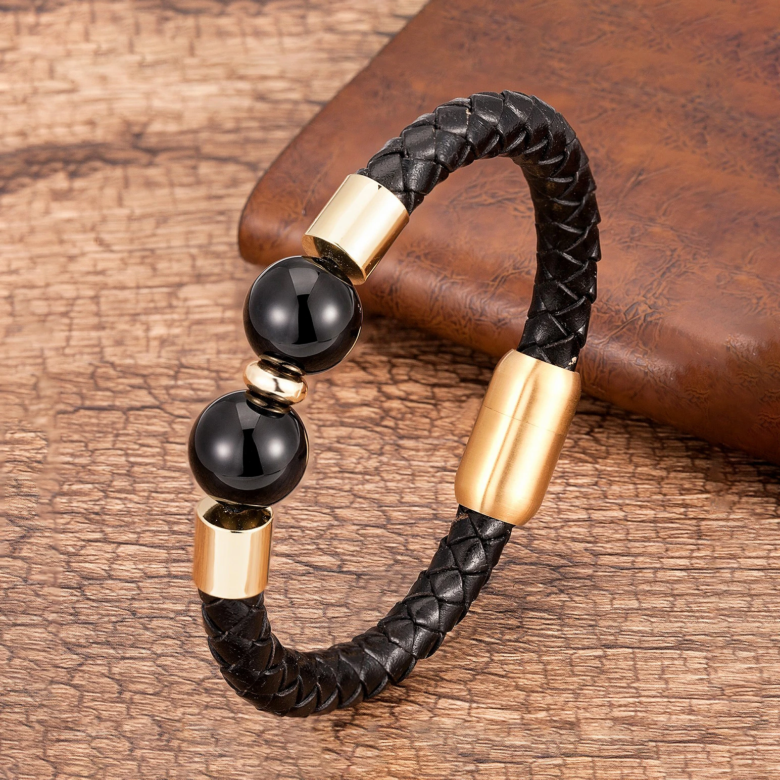 Bransoletka Unisex z Naturalnym Kamieniem i Skórą - Styl Punk