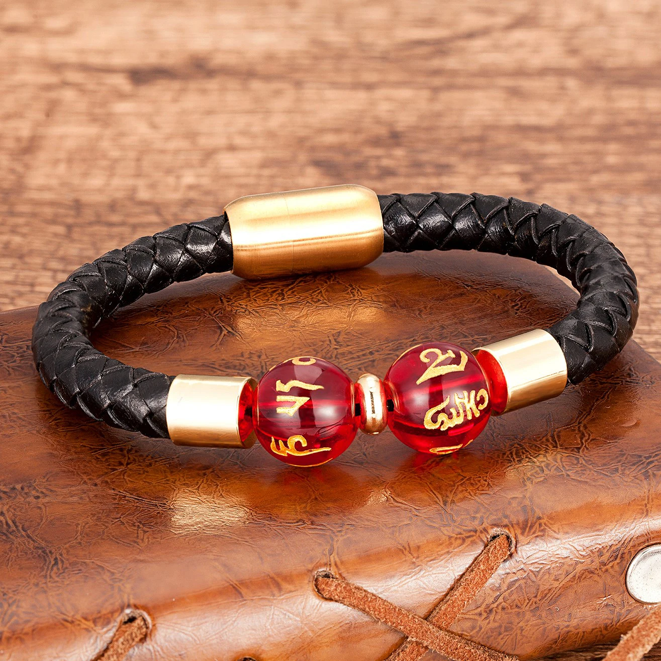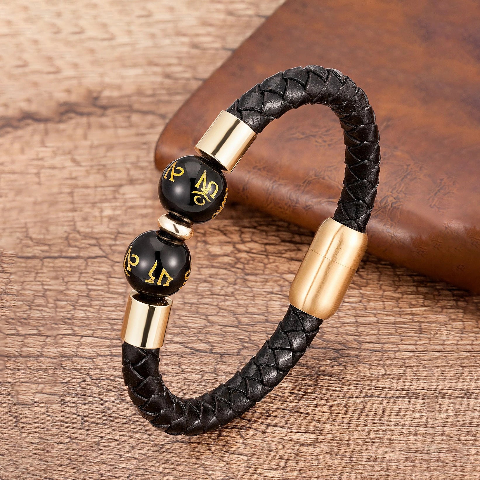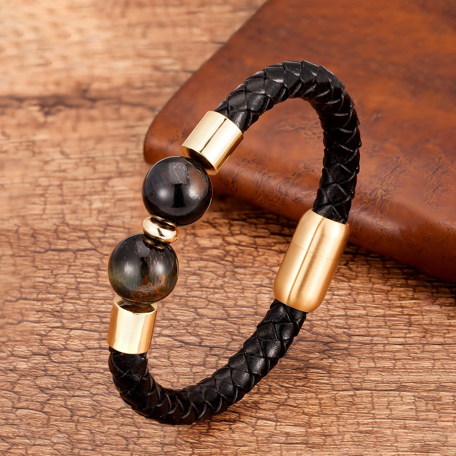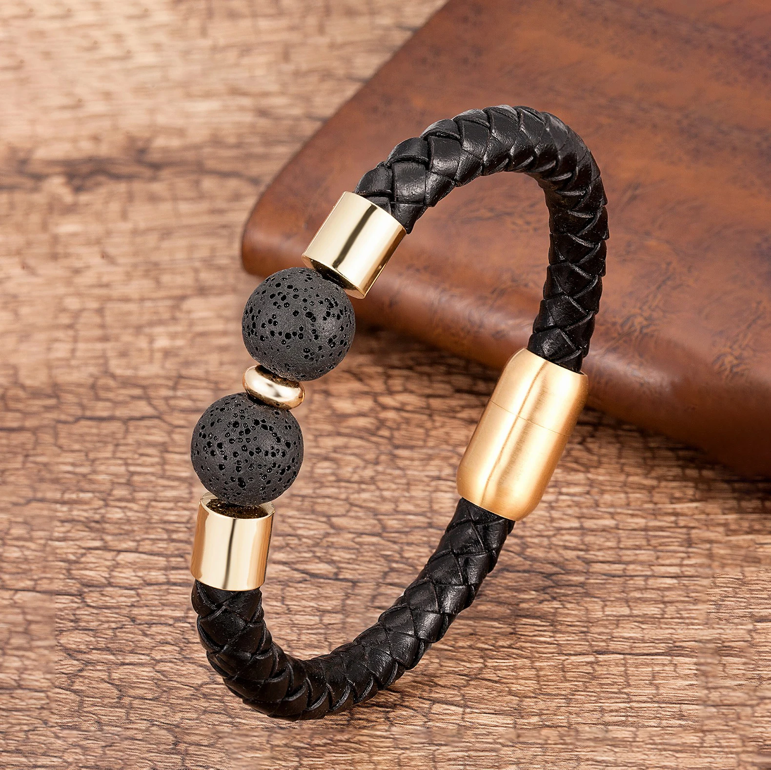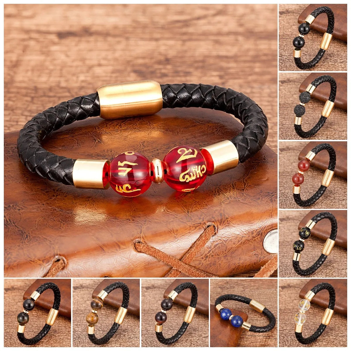 Bransoletka Unisex z Naturalnym Kamieniem i Skórą - Styl Punk