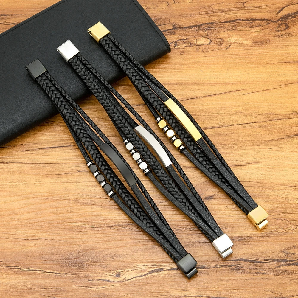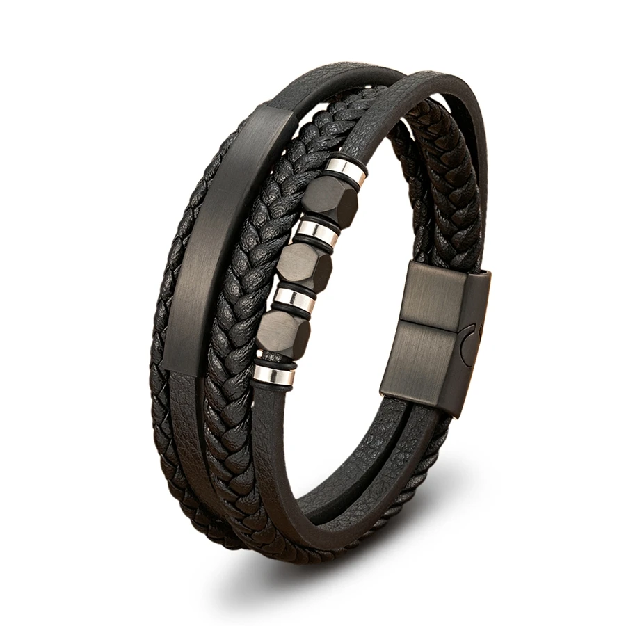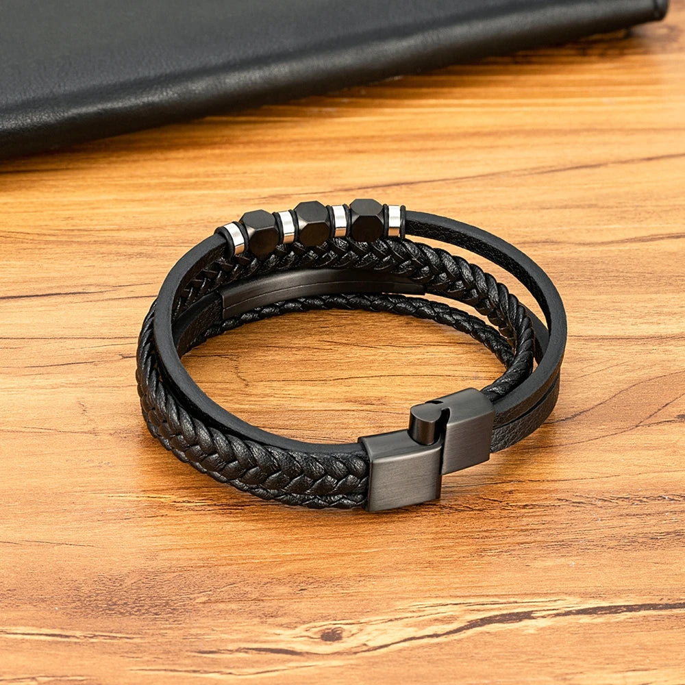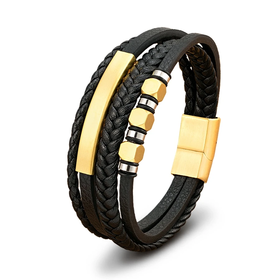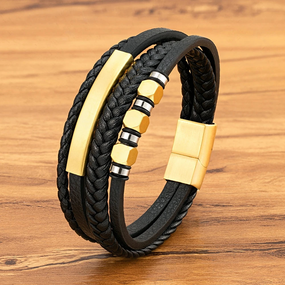 Dodaj charakteru każdej stylizacji dzięki eleganckiej bransoletce męskiej ze skóry naturalnej i stali nierdzewnej. To wyjątkowe połączenie klasy i męskiej energii – idealne dla mężczyzn ceniących elegancką biżuterię o wyrazistym charakterze. Bransoletka została starannie zaprojektowana z myślą o estetyce i wygodzie noszenia. Dzięki wielowarstwowemu skórzanemu splotowi i dekoracyjnym elementom ze stali nierdzewnej w różnych kolorach, świetnie komponuje się z zegarkiem, garniturem lub stylizacją casualową.